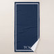 Um conjunto clássico tradicional de toalhas de banho azuis marinho e branco monogramadas. O conjunto inclui pano de lavar, toalha de mão e toalha de banho. Também pode ser vendido separadamente.