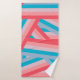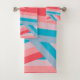 Este conjunto de toalhas tem um design striped de grupos de cinco listras que se cruzam entre si através do design azul, rosa, pêssego e coral. Se você gosta do design, mas prefere cores diferentes, me mande mensagem.