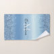 Impressão de folha de alumínio de cor azul brilhante congelado metálico com gotejamento brilhante congelante, tanto em cima como em baixo, com um Monograma personalizado centrado em cada peça. Toalha de Banho, toalha de mão convidada, e lavar roupa disponível como Conjunto, ou vendida individualmente. se você quiser omitir o monograma, basta apagar o conteúdo das caixas de texto e deixá-las vazio.