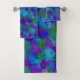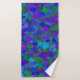Peacock Color Splashes 4755 toalha de banho colocada em Púrpura, Azul e abstrato Verde começou como uma foto das penas coloridas de um pavão e transformou-se neste impressionante design gráfico. Por celeste@khoncepts.com