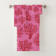 Uma toalha de banho suave e absorvente com um padrão coral elegante, trazendo serenidade oceânica e charme costeiro para o seu banheiro com um toque refrescante à beira-mar