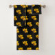 Uma fotografia de uma flor amarela de mandioca enfeita este bonito conjunto de toalhas! Personalize mudando a cor de fundo para se adequar!