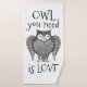 O desenho da coruja com corpo em forma de coração e texto personalizado.