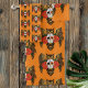 Coruja excelente marrom corada com um dia de crânio de açúcar morto e rosas vermelhas num pano de fundo de laranja
