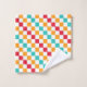 Alternating red, orange, teal, and white squares create a colorful, vibrant checkerboard pattern, conveying an energetic and playful tone.