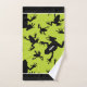 Sapos de amor ou até ter um sapo de estimação? Este conjunto de toalhas de banho é perfeito! Este adorável conjunto personalizado de toalhas é verde e preto e tem uma silhueta sapo em um padrão. Adicione um nome para um toque personalizado ou remova de acordo com sua preferência. Este padrão de sapo bonitinho faz um excelente extra ao banheiro de uma criança!