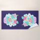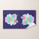 Conjunto de toalhas com uma ilustração fofinha apresentando um cupcake e sorvete sorrindo de alegria. Um arco-íris e corações rodeiam o desenho. Uma nuvem fofa e fofa também está sorrindo de felicidade. O cupcake e o sorvete têm um trompa de unicórnio em cima. Cheio bonito e adorável de alegria.