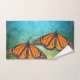 Toalha Borboleta Monarch, em verde e azul, com borboletas laranja.