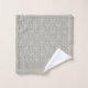 Este conjunto de toalhas elegante apresenta um design damasceno cinza com uma borda cinza sólida.