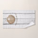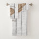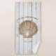 Adicione um toque elegante à decoração do banho com um conjunto de Torres de Banho de Shell Vintage Scallop. Toalha design apresenta uma carapaça de couro cabeludo vintage e texto personalizado para que você personalize com seu nome de família contra um fundo de madeira. Itens adicionais de decoração pessoal disponíveis com este design.