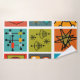 Este conjunto de toalhas tem um pano de lavagem verde, uma toalha de ouro, e uma toalha de banho com um design moderno do século médio de um pedaço de gráficos modernos do século médio em cores retrógradas.