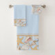 Conjunto de três correspondências: pano de lavagem; toalha; e toalha de banho. O perfeito lugar para uma praia e um banheiro com tema de concha.