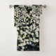 Renove seu banheiro com este conjunto de toalhas de banho impressas com um vibrante design de margaridas brancas florescendo em um prado verde exuberante, infundindo serenidade e elegância natural ao seu cotidiano. Feitas de flanela de algodão fofa e altamente absorvente, macia ao toque, secagem rápida e resistente a desbotamento após lavagens, inclui toalhas de banho e de mão com bordas tecidas para durabilidade. Pendure-as em suportes para exibir o padrão floral como decoração elegante.