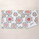 Este conjunto de toalhas tem uma toalha de banho com um design moderno século médio de flores feito de círculos em tons de rosa, anango e borla e linhas pretas, um pano de lavagem rosa escuro e uma toalha rosa mais leve.