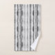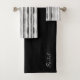 Conjunto de banho com monograma de padrão listrado preto e branco.