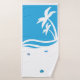 Praia Azul e Branca com palmeira e toalha de conchas.