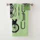 Conjunto de toalhas de Design de Círculo com cor de fundo e texto personalizáveis em todas as três partes.