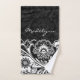 Toalhas de Banho Floral Design branco preto-escuro a negrito Definidas com personalização opcional em cada peça.