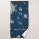 Adicione um toque festivo à decoração da casa de banho nesta temporada de férias com um Conjunto de Toalhas de Enfeites de natal Azuis. Design de toalha apresenta um trio de Enfeites de natal suspensos com flocos de neve em queda e um fundo azul escuro. Itens adicionais de presentes e feriados disponíveis com este design também.