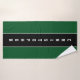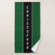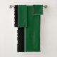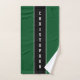 Na moda Dark Green Bath Towel Set com duas listras brancas finas e uma faixa preta vertical larga no centro com nome personalizado nele.