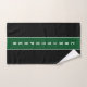 Na moda Black Bath Towel Set com duas listras brancas finas e uma grande faixa verde escura vertical no centro e o nome personalizado nele.