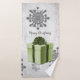 Adicione um toque festivo à decoração da casa de banho esta temporada de férias com um Conjunto de Toalhas de Natal Verde. A design da toalha apresenta um presente de Natal embrulhado e vibrante, enfeitado com cinzas e flocos de neve brancos contra um fundo de nuvens de cinzas. Itens adicionais de presentes e feriados disponíveis com este design também.