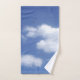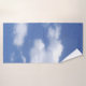 Nuvens brancas fofas estão espalhadas por um céu azul brilhante. A imagem transmite uma sensação de paz e abertura.