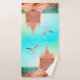 Perfeito para o banheiro temático de praia! Uma gaivota paira sobre um castelo de areia perto do mar. Visite o programa de diversão4UDescartazes para mais toalhas DIVERTIDAS!
