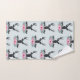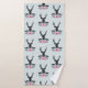 Toalha estampada com uma cabeça de cervo preto com grandes galhadas. Linhas geométricas dentro na face do veado acrescentam um toque criativo. Flores cor-de-rosa e folhas verdes de menta formam um bonito buquê floral abaixo de sua cabeça. Um esboço de serra colocado entre as flores também agrava o sentimento rústico do país.