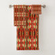 Este conjunto de toalhas apresenta um desenho geométrico e abstrato composto por listras, curvas, chevrons e linhas em cores do deserto Americano do Sudoeste: amarelo, verde, azul, vermelho, laranja e muito mais. Design bonita e incomum.