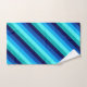 Um conjunto de toalhas de banho com um padrão legal de design de faixas diagonais em azul marinho, azul de cobalto, azul-céu, talha de menta gelada e tartaruga-clara.