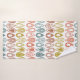 Este conjunto de toalhas tem um pano de lavagem dourado, uma toalha de mão marrom e uma toalha de banho com um design de boho de ovais pontiagudos em Boho tons rosa, azuis, dourados e marrons.