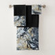 Toalha preta com borda branca e Dourada preta preta a negrito (fundos brancos) Disponível como um conjunto ou individualmente. Pintura original de R. Lamb