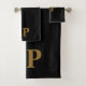 Este conjunto de toalhas de banho apresenta um design preto com iniciais douradas, adicionando um toque de estilo e personalização ao seu tempo de banho. Personalize-as com as suas iniciais ou com as de um ente querido, criando um presente sofisticado e pensativo.