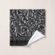 As plumas belas e as pálpebras de penas em prata "metálica" são lindamente dramáticas contra um preto como fundo noturno neste design incrivelmente elegante, gerado por computador. Silver, como vocês devem saber, simboliza riqueza, sucesso e poder, enquanto o negro é o epítome da formalidade, elegância, atração e mistério. Não admira que estas duas sejam uma das combinações de cores de "potência". Esse fabuloso design foi ancorado com uma "fita" de preto e prata, moldando prata pequena, curvada e circular, elementos dimensionalizados. Esta "fita" coroa uma sólida área preta do lado impresso dos tecidos. Este adorável conjunto de toalhas adiciona drama e elegância imediata à decoração do banheiro.