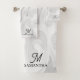 Uma única e elegante toalha de mármore preto, branca e cinza. Personalize o script Monograma e o nome.