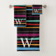elegant black purple and yellow stripes monogram bath towel set ,modern colorful stripes monogram bath towel set,