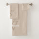 Add a touch of timeless elegance to your bathroom with our custom monogram bath towel set, personalized with your name and initial in a beautifully simple and modern design. Featuring the name and initial in a blend of modern and script fonts with beige and white text set against a beige background, these colors can be changed if preferred. Whether you're updating your own space or gifting to someone special, this piece combines style and individuality in one stunning accent.