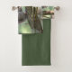 Este conjunto de toalhas apresenta cores suaves e um esquilo almoçando na floresta de Connecticut.
