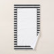 O fundo branco e o quadro central podem ser mudados para qualquer cor neste conjunto de toalhas de banho moderno e na moda, design decorativo com faixas de na moda preto e branco, o texto pode ser adicionado para personalizar você mesmo ou um belo presente.