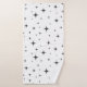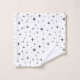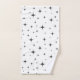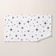 As estrelas pretas cintilantes apresentam uma design de tendência sobre uma matéria têxtil branca de toalha.