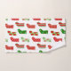 Este conjunto de toalhas tem um design de Natal de meias espalhadas com diferentes padrões.