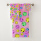 emoji rostos sorridentes multicoloridos no conjunto de toalhas de banho cor-de-rosa
