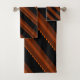 Esta é uma combinação de faixas vibrantes de ângulos vermelho-místico e marrom-sela que formam um padrão de abstrato numa canvas preta profunda, resultando num design de sotaque em toalha de tom sutil excepcional.