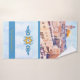 How delightful it is to have a perfectly coordinated bathroom, from shower curtains to bathmats, paired with a luxurious towel set personalized with the family name. This exquisite set, available as a complete ensemble or individual pieces, is truly a work of art for your home. Featuring a mixed-media illustration styled as an oil painting of the Eastern Wall, also known as the Prayer Wall in Jerusalem, it beautifully captures the ancient ruins of the Temple Mount. Adorned with the Star of David framed by olive branches, a turtle dove, and a star, the design’s rich blue hues celebrate and honor Israel as the Holy Land. The washcloth is inscribed with “Holy City of God,” and can be customized with your own name or meaningful phrase. This remarkable set makes an unforgettable gift for newlyweds, loved ones, or as a thoughtful present for a gracious host at your next gathering.