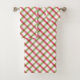 O conjunto de toalhas de banho de férias é mostrado com um impressão verde e xadrez vermelha. Personalize este item ou comprar como está.