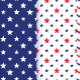 Uma coleção de toalhas com padrões de estrelas vermelhas, brancas e azuis penduradas em um rack de toalha.