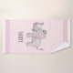 Este design de toalha, adorável e giro, apresenta um elefante cor-de-água rosa, com espaço para você adicionar seu nome em uma bela tipografia. Perfeito para o seu bebê ou filho! Vejam o resto da nossa coleção para outros animais fofinhos de safari rosa.