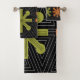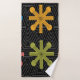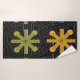 Este conjunto de toalhas tem uma design moderna do século Médio de estrelas em cores retrógradas em um campo de preto.