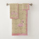 Flamingo Dance Bath Toalha. Aproveite o gosto do exótico nesta design para o seu banheiro ou quarto de hóspedes. Decoração elegante em um padrão neutro de diamante. Um belo par de pássaros cor-de-rosa e salmões para elogiar seu gosto e estilo. Adicione um monograma para personalizar. Matriz de Banho e acessórios disponíveis.